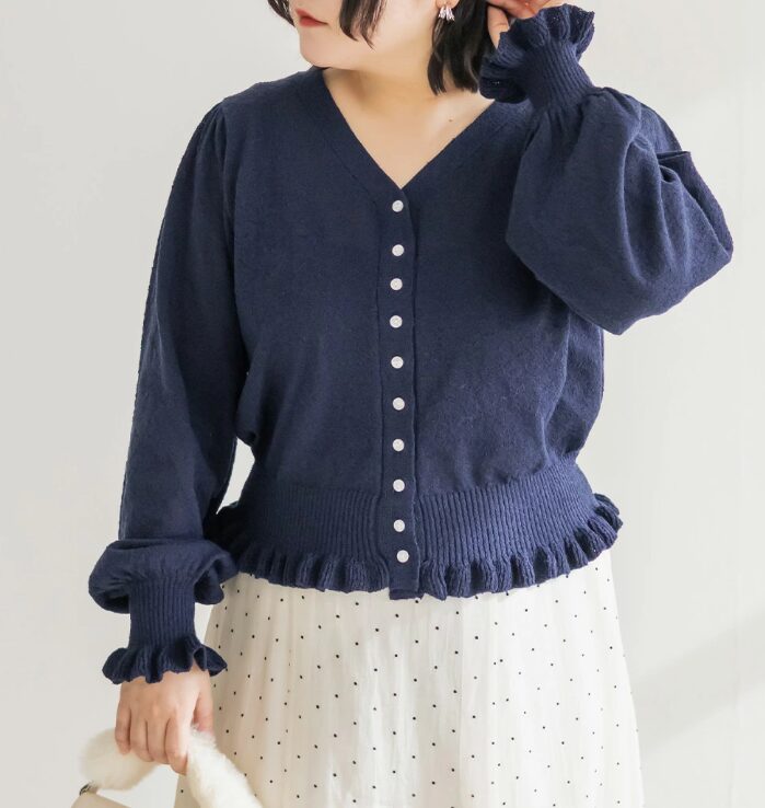 アイテム:オリジナルフリル使いVネックニットカーディガン