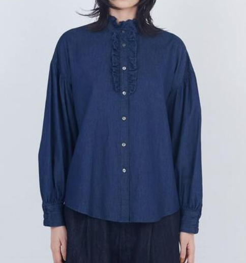フリルと程よいボリュームの袖がきれいめなアイテム。