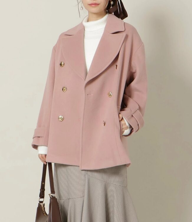 上品なPコートをミドル丈に仕上げることで程よい抜け感を演出。