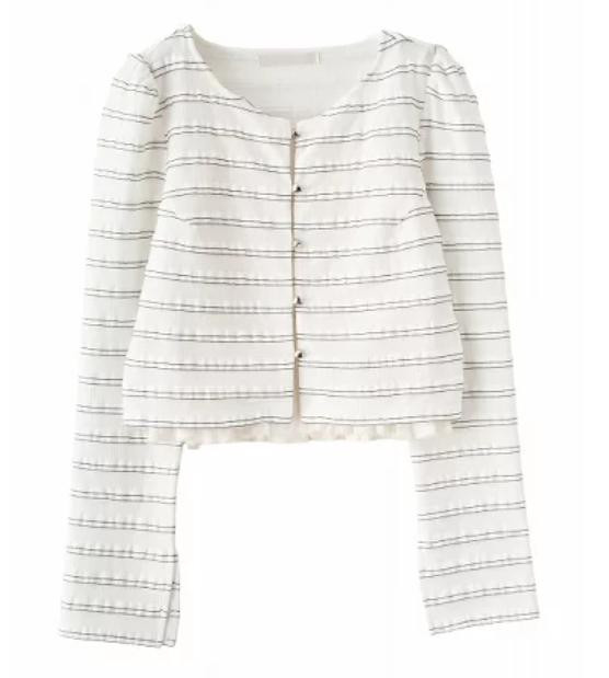 ボタンを閉じて甘めトップスとしても、羽織としてもオススメです。