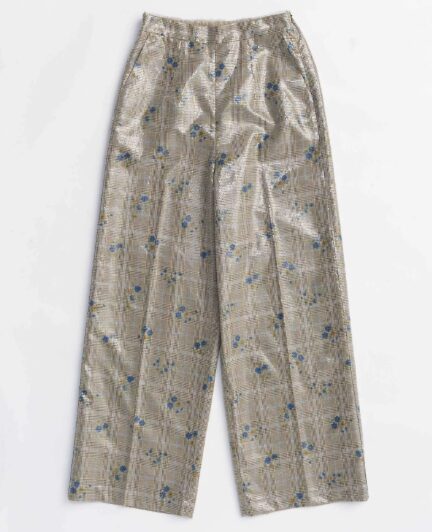 クラシカルなチェック柄素材の上に、スパンコールを全面にたたきつけたスペシャルファブリックを使用。