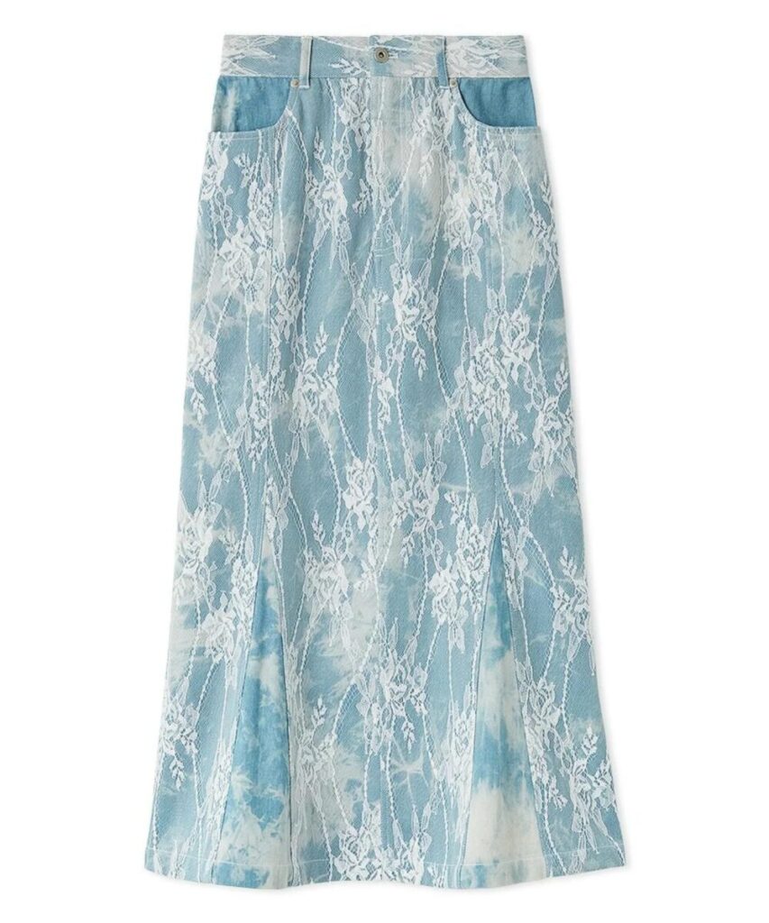 ハンドテクニックや編み地に変化をもたらせたミックスニットスカート。