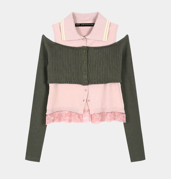 アイテム:2way Shirt Knit Docking Tops/2WAYシャツニット