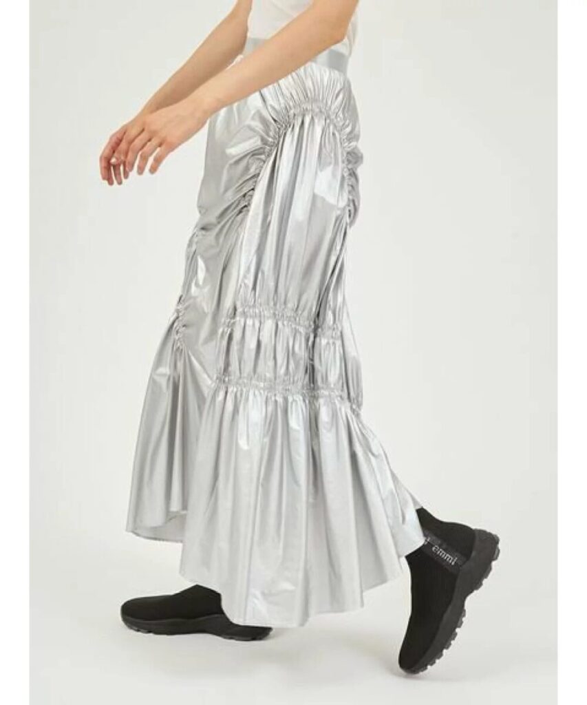 歩くたびにふわふわと生地が揺らめき、キラッと艶めきます。