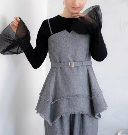 フリル見えするウエストデザインが華やかで、気になるウエストラインをさりげなく隠してくれます。