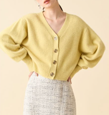 フォックスを使用した上質素材のカーディガン。