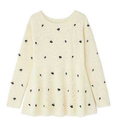 人気のフラワー刺しゅうをあしらった華やかなペプラムニット。