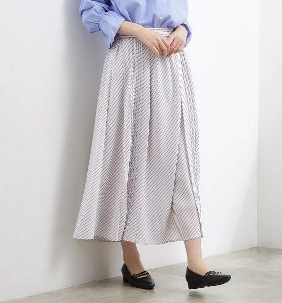 動くたびに表情が生まれる、軽やかなストライプスカート。