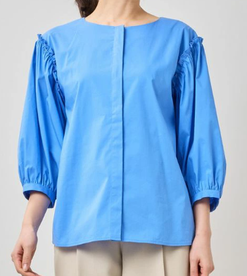 袖にデザイン性を持たせた、七分袖のプルオーバーブラウス。