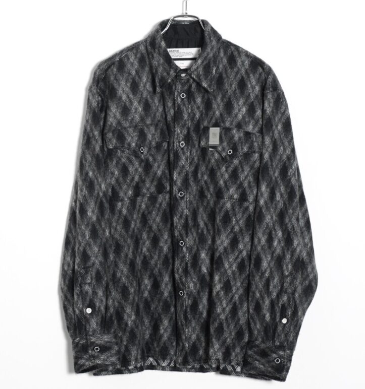 起毛感のあるモヘア素材を使用した、ダイリクのアーガイルチェックシャツ。