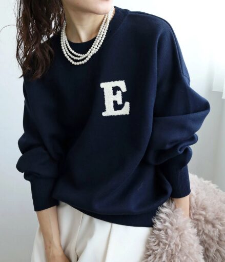 サガラ刺繍のワンポイントロゴが際立つスウェットライクニット。