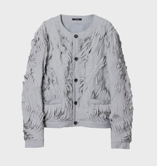 細い生地テープを幾重にも重ねて作られたジャケット。