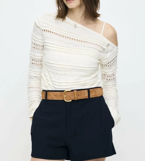 ストラップ付のワンショルダーデザインで、程よい肌見せスタイルが叶います。