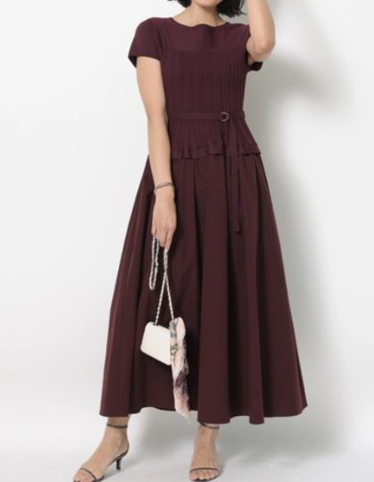 ひらひらとしたバックプリーツが女性らしさを引き立たせるワンピース。