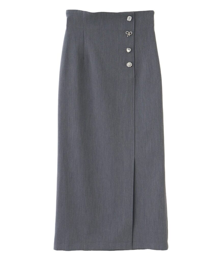 繊細なビジューボタンをアソートであしらい、リボンやストーンなど、異なるモチーフが並ぶことで、シンプルな着こなしにも表情を添えてくれます。