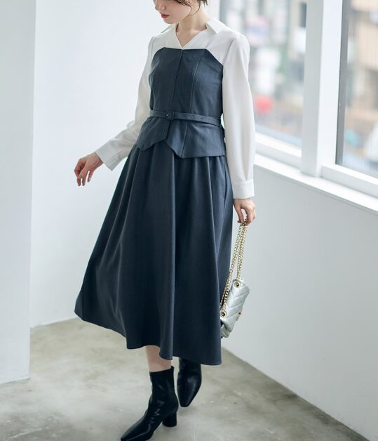トレンドのビスチェドッキングデザインが特徴のワンピース。